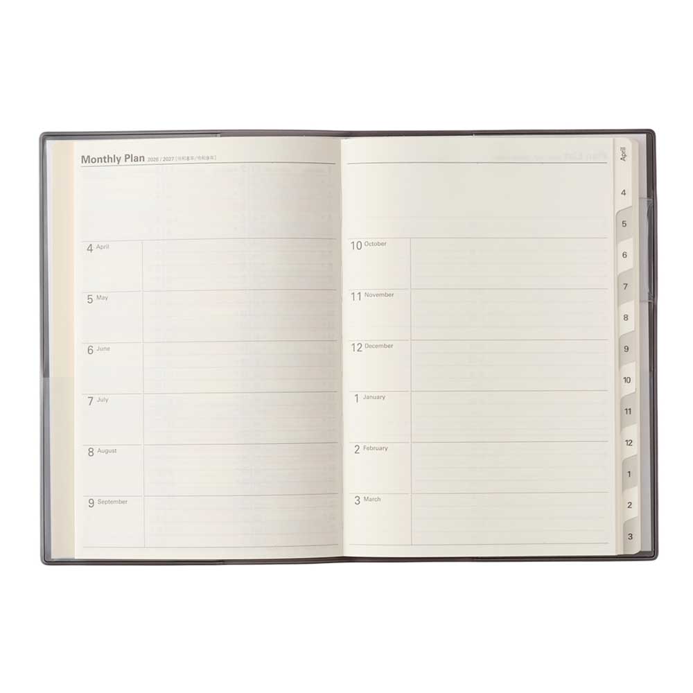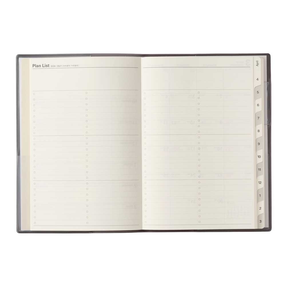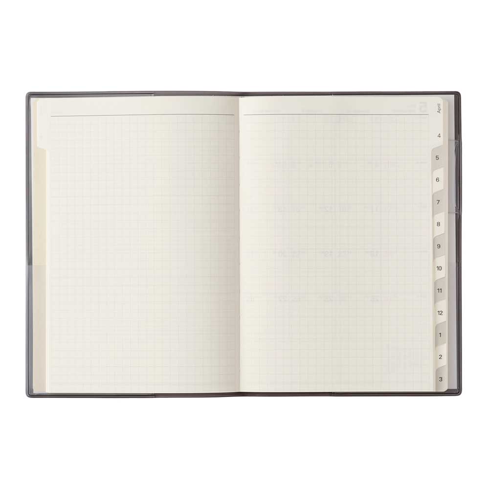 Point2.月と月の間には記録しやすい罫と方眼のメモページが入っています。月ごとの出来事やアイデアを記録することで、思考を整理できます。