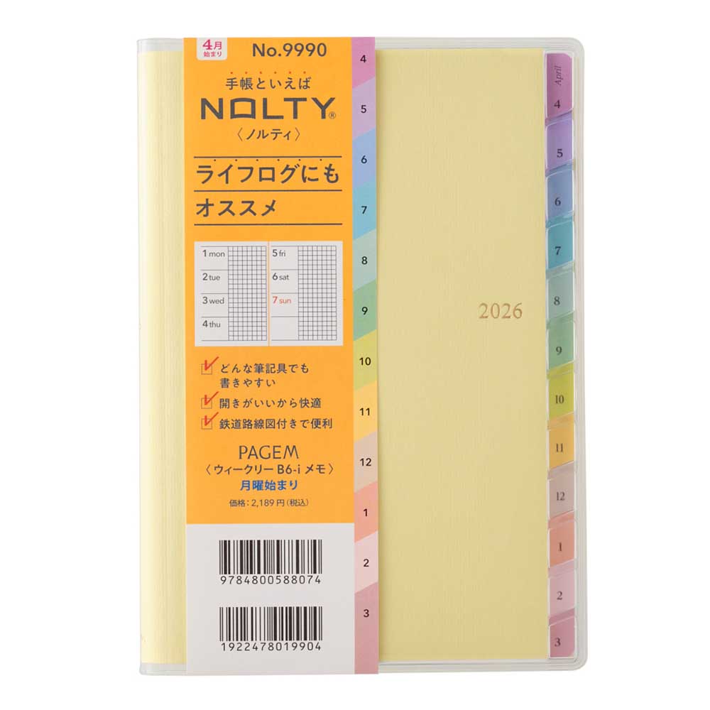 \ライフログにおすすめ/ 2026年4月始まり 手帳 スケジュール帳 ダイアリー PAGEM by NOLTY ペイジェム | B6 〈月間カレンダー + 週間メモ〉 月曜始まり インデックス (イエロー,ブルー) [9990,9991] nolty 2026 能率手帳 おすすめ (2026年3月始まり)