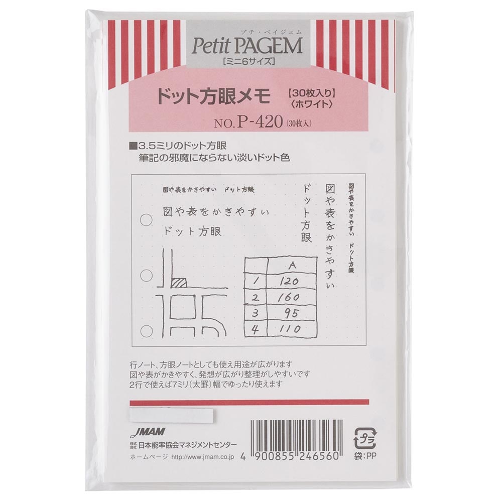 システム手帳 ミニ6穴 リフィル ドット方眼メモ(30枚入り)[P420] ノルティ 能率 文具 文房具 ビジネス リフィール レフィル 差し替え用 差替用 プチペイジェム nolty