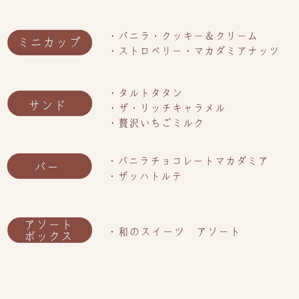 ・バニラ・ストロベリー・クッキー&クリーム・マカダミアナッツ