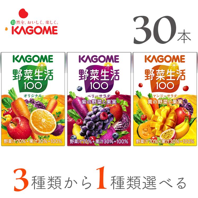 野菜ジュース 野菜生活 カゴメ オリジナル ベリーサラダ マンゴーサラダ やさいとりんご100ml 3種類から1種類選べる30本