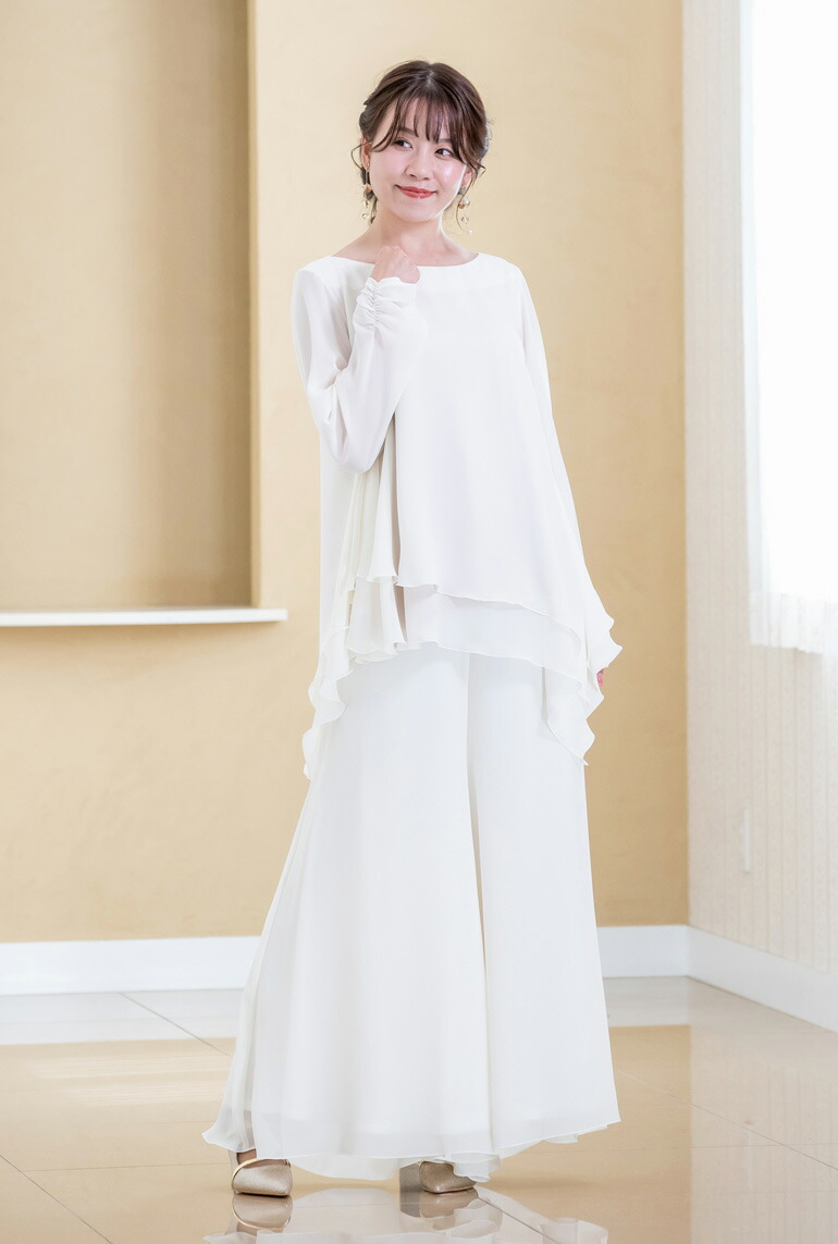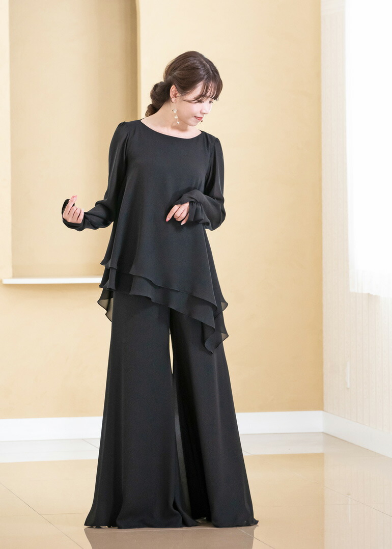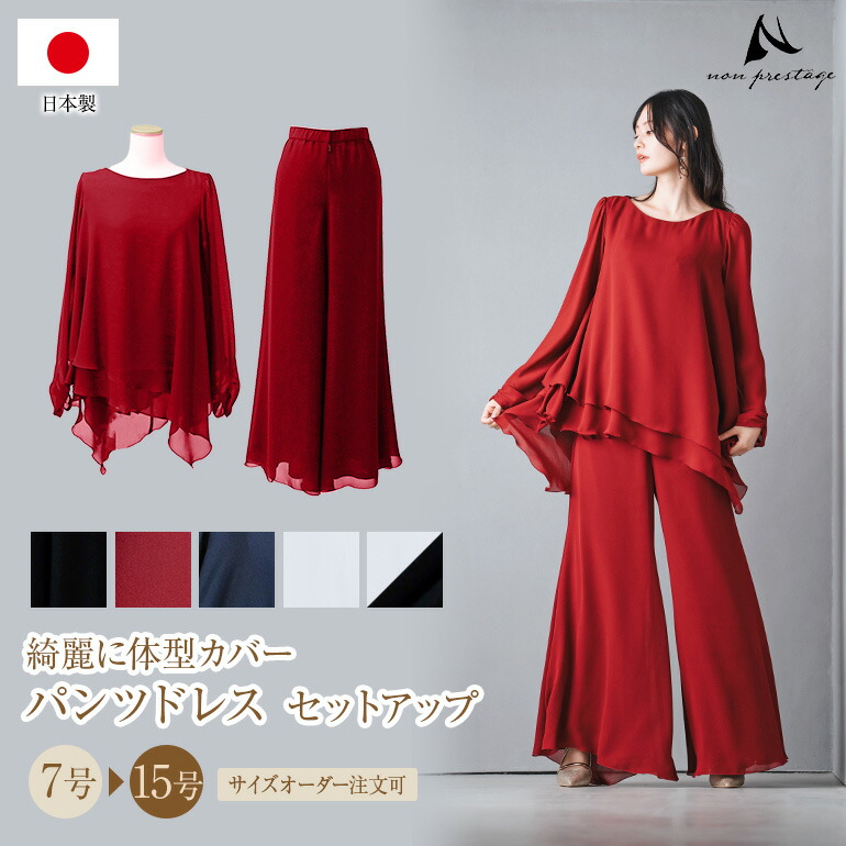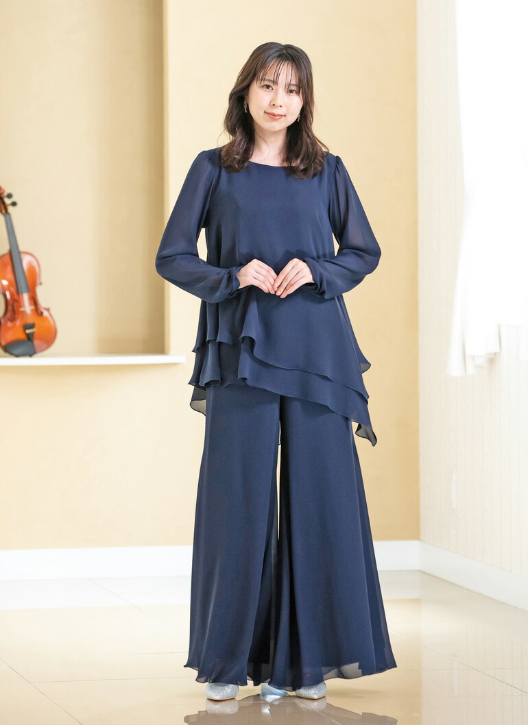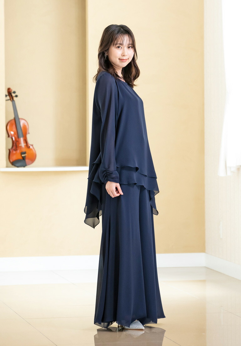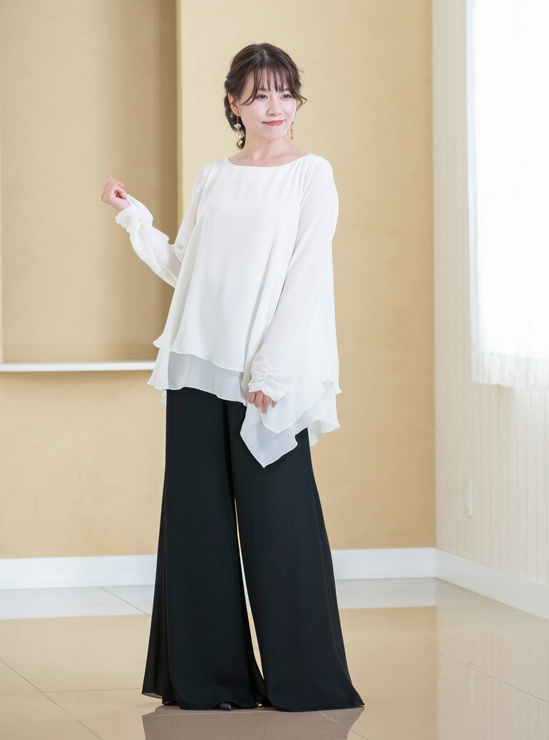 パンツドレス セットアップ レディース ブラウス パンツ 体型カバー ステージ 衣装 演奏会 袖あり 演奏会用ブラウス 30代 40代 50代 60代 70代 (bl851-p3091)