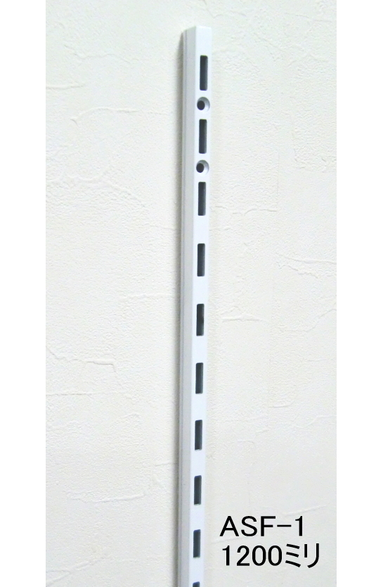 耐荷重などは同じです。 レールを何本か並べて設置する際、両端はこちらのASF-1(Aホワイト)、真ん中は AWF-5(Aホワイト)を設置すると、ブラケット(棚受け)の設置のパターンが広がります。