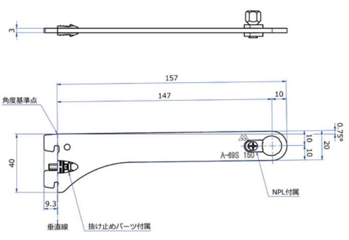 ※丸パイプ1本に対して、ハンガーブラケット×2〜3個、エンドキャップ×2が必要となります。 いずれも単品販売をしておりますので、ご注意ください。  | ←設置イメージです。 ブラケットの長さが異なりますのでご注意ください。 | 【仕様】 材質:鉄にクロームメッキ ・呼び名(サイズ)一覧 | 呼び名 | パイプ芯寸法(mm) | 実寸法(mm) ※爪部分を除く全長 | レールに引っ掛ける 爪の数 | 2本あたりの目安荷重(kg) (当ブラケットは軽量用です) | | 呼び名50 | 47 | 57 | 2 | | | 呼び名70 | 67 | 77 | 2 | | | 呼び名100 | 97 | 107 | 2 | | | 呼び名150 | 147 | 157 | 2 | | | 呼び名200 | 197 | 207 | 2 | 8kg | | 呼び名250 | 247 | 257 | 2 | | ※厚みはすべて3ミリ NPLパイプ振れ止め付き、自動ロック抜け止め付き ※目安荷重は、棚受2本とブラケット2本とパイプ1本場合のデータです。 チャンネルサポート同士の幅は900ミリを基準としています。 安全荷重は、破壊荷重の20%です。 下地が、しっかりとしたところに設置した場合が、前提となります。 |
