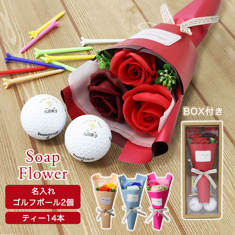 | セット内容 | ソープフラワー 「フェアリー」ブーケ1個、名入れゴルフボール(片面)2個、ゴルフティー 14本 |