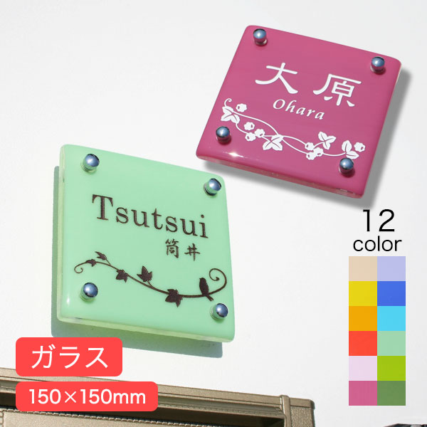 表札 ガラス 手作りガラス表札II・ビビッド14(Fourteen) おしゃれ 北欧 戸建 正方形 二世帯 風水 表札マイスター