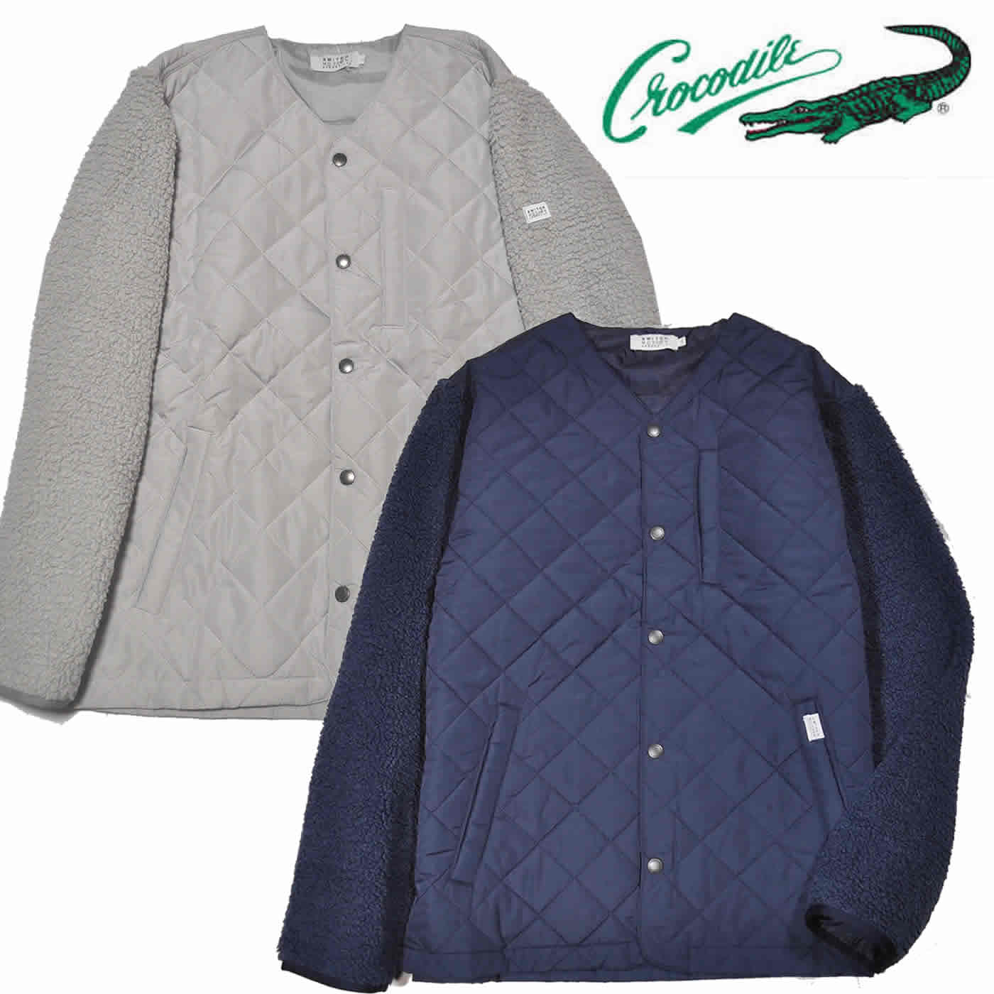 [クロコダイル] ノーカラーブルゾン 襟なし ダイヤ中綿キルト袖フリース仕様 ユニセックス 1502-38271