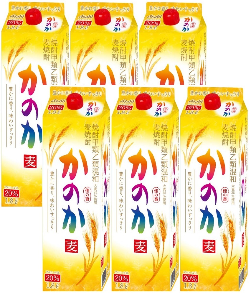 ギフト プレゼント お歳暮 クリスマス かのか 麦 パック 20°1800ml 6本 麦焼酎 アサヒビール 甲乙混和 焼酎