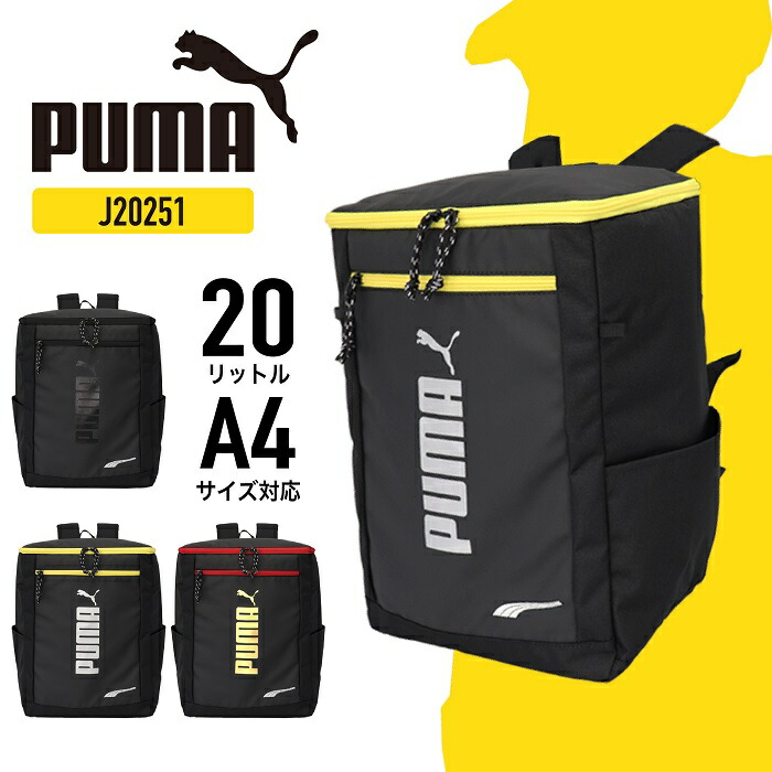 PUMA プーマ リュックサック スクエアリュック BOX型 デイパック バックパック キッズリュック ロゴ コーティング 軽量 撥水 キッズ A4 20L アドルフ J20251