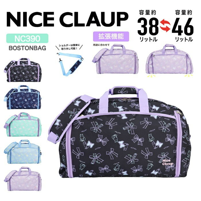 NICE CLAUP ナイスクラップ ボストンバッグ 38-46L 女の子 ガールズ 子供 キッズ ジュニア 小学生 大容量 マロンシリーズ NC390