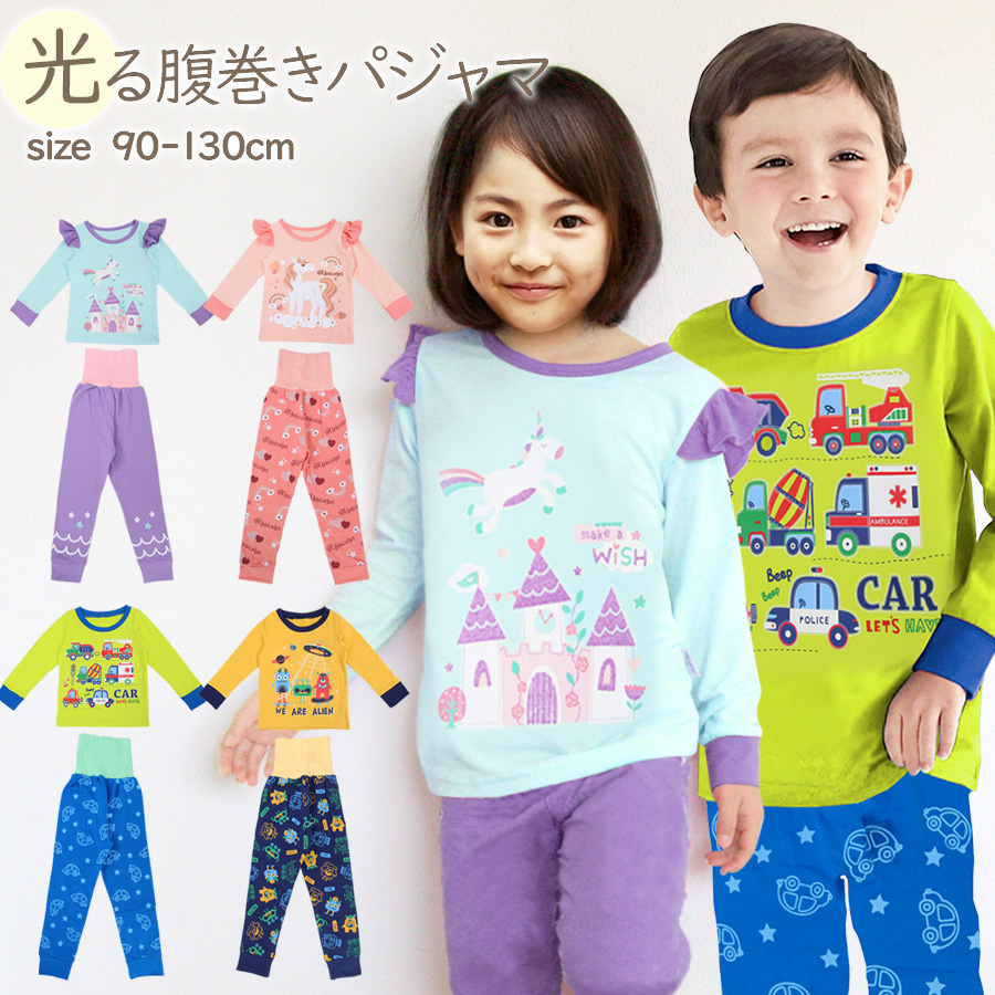 子供服 パジャマ 長袖 腹巻付 春 秋 冬 おしゃれ 男の子 女の子 セパレート キッズ ユニコーン 腹巻き 部屋着 光る プリント 90 100 110 120 130