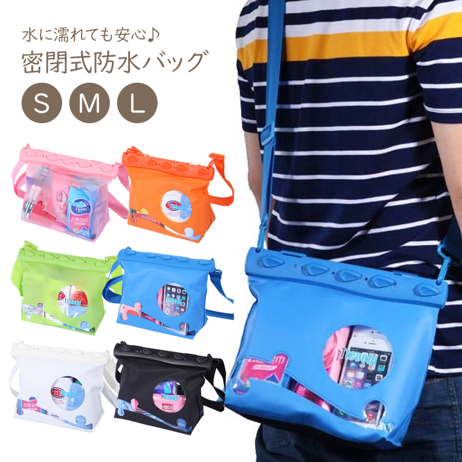 水に濡れても安心の防水バッグです。プールやビーチなどでのスマホや小物入れに最適!