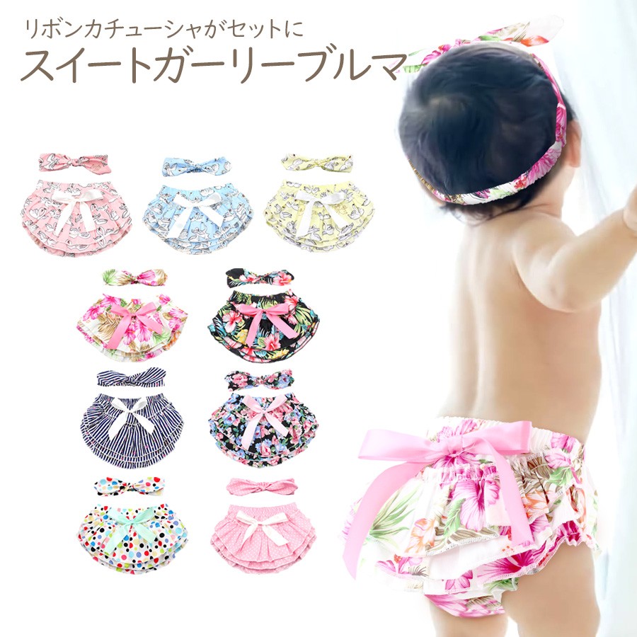 ブルマパンツ ブルマーパンツ かぼちゃパンツ ヘアバンド付き 2点セット ショートパンツ フリフリ オーバーパンツ バルーンパンツ ベビー服 メール便