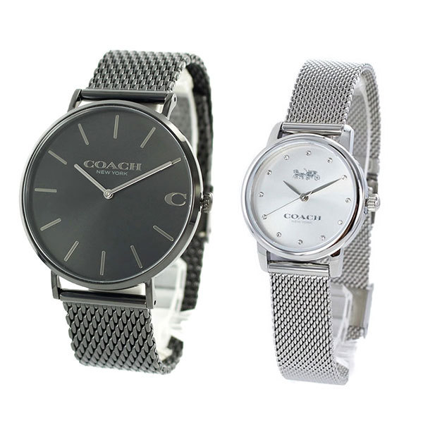 誕生日 毎日使える 2本セット ペア ウォッチ 腕時計 手表 コーチ ブラック シルバー メッシュ 記念日 爆買 成人 卒業 入学