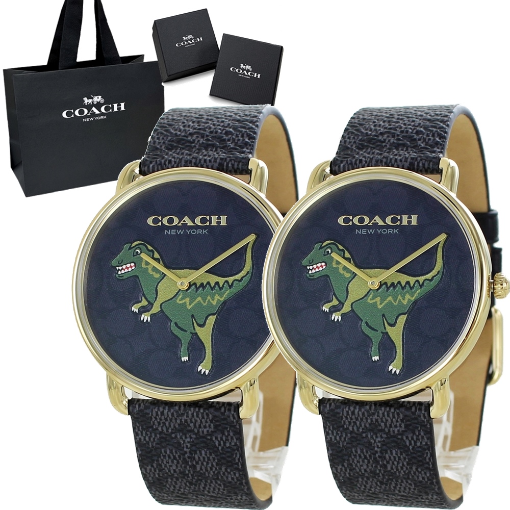 ショッパー付き コーチ ペアウォッチ ペア腕時計 お揃い 黒 革ベルト レキシー 恐竜 カップル 誕生日 爆買 成人 卒業 入学