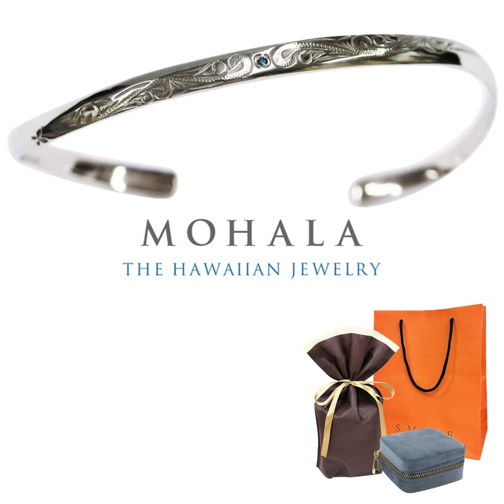 ラッピング済 ギフトセット モハラ ハワイアンジュエリー バングル メンズ ジュエリーケース付き ブルー ダイヤモンド 爆買 成人 卒業 入学