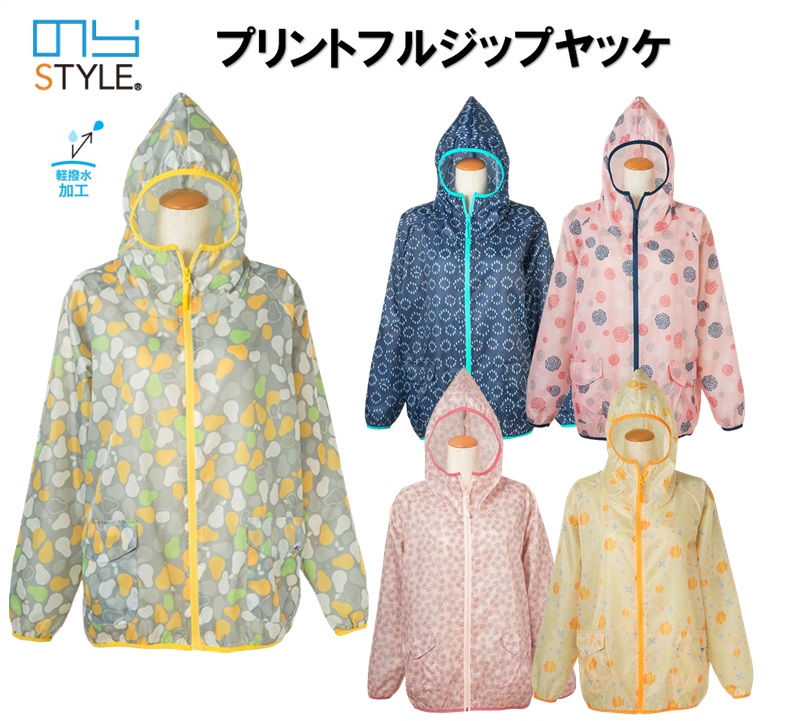 のらスタイル 農作業着 レディース プリントフルジップヤッケ NS-330 農作業 ガーデニング アウター フード付き 軽はっ水 家庭菜園 掃除 薄手 裏地無し 長袖 可愛い おしゃれ