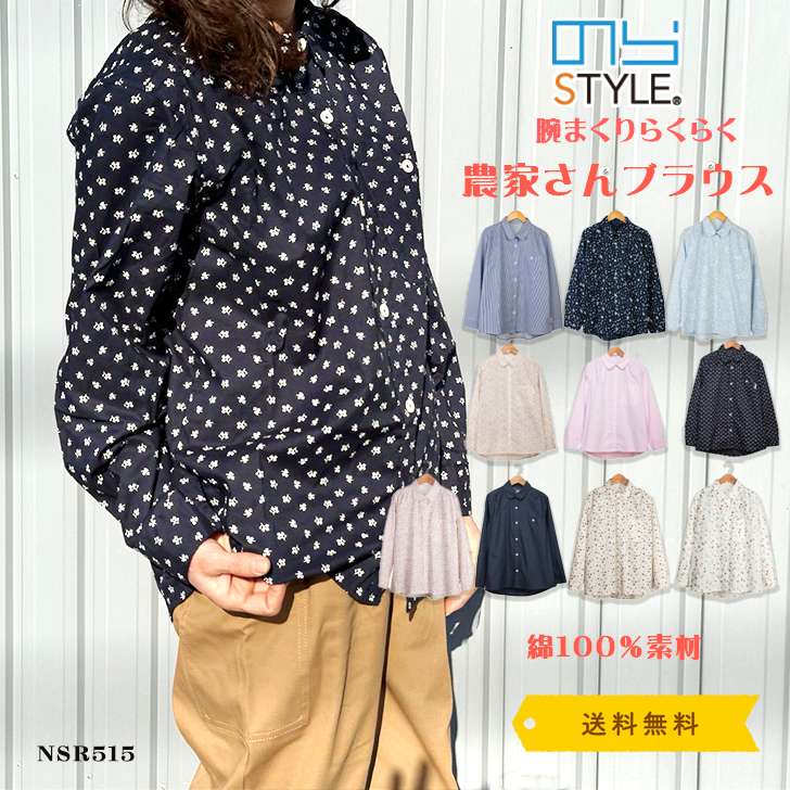 のらスタイル 農家さんブラウス NSR-515 農作業着 レディース ガーデニング コットン 綿 かわいい おしゃれ 普段着 掃除 農業女子 ユニホーム