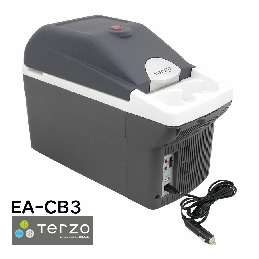 Terzo テルッツォ by PIAA 車載温冷庫 8L エクセルクール マルチ ホワイト×ダークグレー USB対応 ドリンクホルダー付 ペルチェ式 2年保証 EA-CB3
