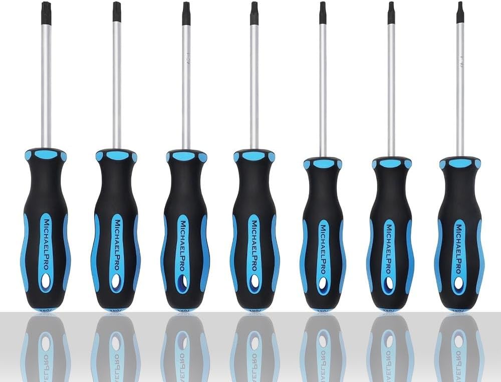 MichaelPro マイケルプロトルクスドライバーセット 7本セット 人間工学に基づいたデュアル マテリアル グリップ ハンドル付き T10、T15、T20、T25、T27、T30、T40、マグネットチップ