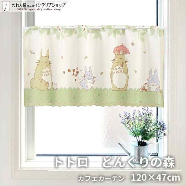 カフェカーテン スタジオジブリ 120cm幅 47cm丈 キャラクター 小窓カーテン キッチンカーテン どんぐりの森 アイボリー 緑(10407)
