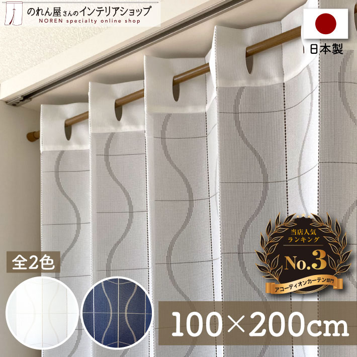 アコーディオンカーテン 洋風 シンプル モダン 100cm幅 200cm丈 パタパタカーテン 間仕切り カーブライン ホワイト 紺(11655 11657)