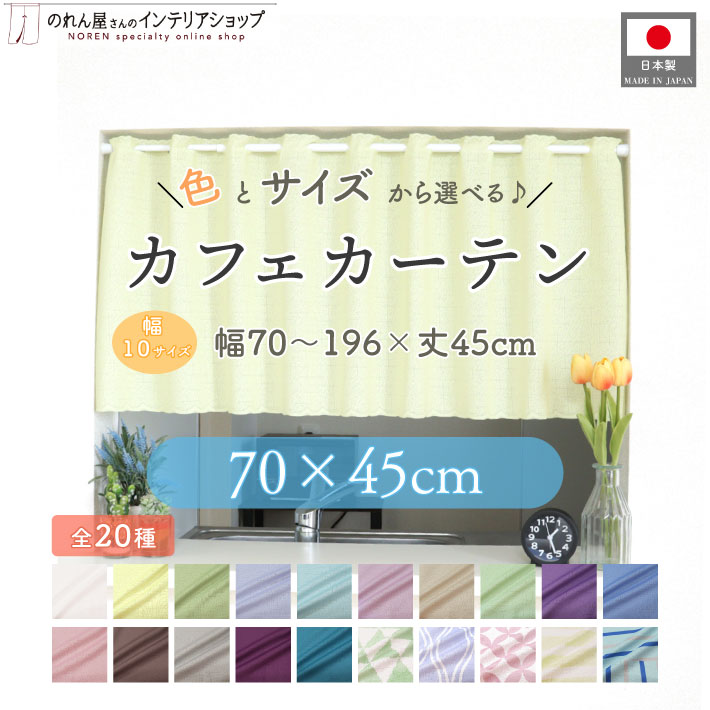 カフェカーテン サイズオーダー 70cm幅 45cm丈 20色 日本の伝統色 セミオーダー 洋風 小窓カーテン キッチンカーテン(受注生産 28755〜)