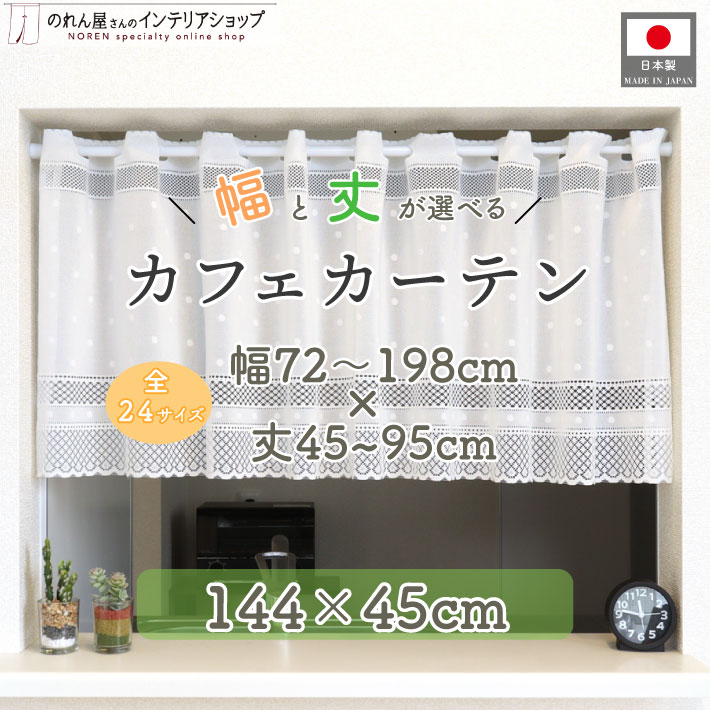 カフェカーテン サイズオーダー 144cm幅 45cm丈 ドット セミオーダー サイズ注文 洋風 小窓カーテン キッチンカーテン(28940)