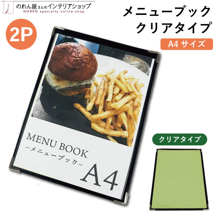 メニューブック A4サイズ 2P クリアタイプ PVC素材 高級感 金属角 お品書き メニュー表 メニューカバー 業務用 店舗用(29472)