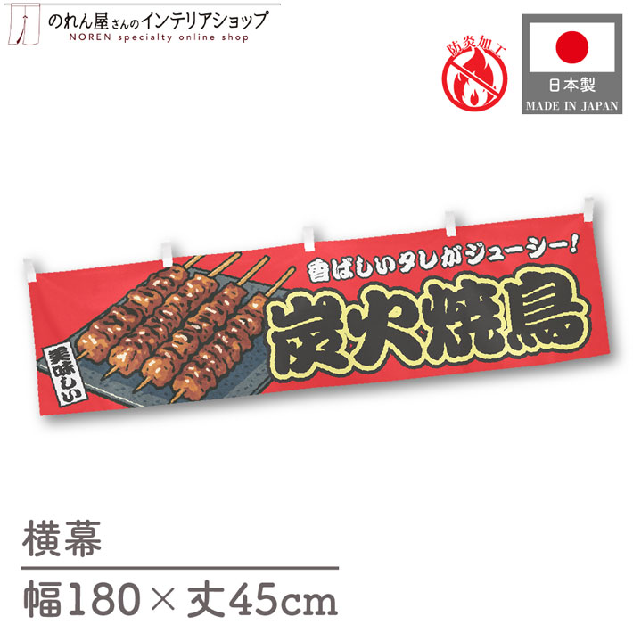 横幕 屋台幕 横長 防炎 180cm幅 45cm丈 共チチ 炭火焼鳥 赤 のれん 暖簾 イベント フェア 祭 業務用 店舗用 飲食店(受注生産 44697)