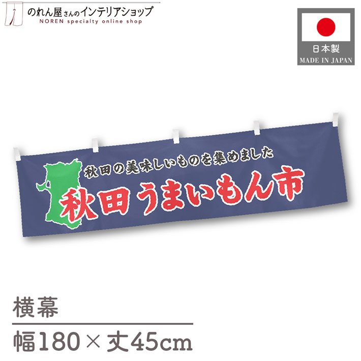 横幕 屋台幕 横長 180cm幅 45cm丈 共チチ 秋田うまいもん市 物産展 グルメ 特産品 フェア イベント のれん 暖簾 業務用 (受注生産 45012)