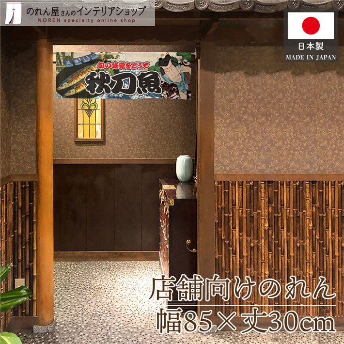 のれん ショート 85cm幅 30cm丈 秋刀魚 Yakusha-e Style 浮世絵 歌舞伎 暖簾 業務用 店舗用 飲食店(受注生産 45427)