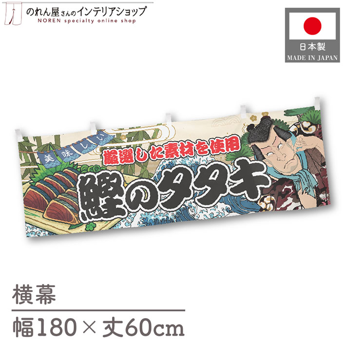 横幕 屋台幕 横長 180cm幅 60cm丈 共チチ 鰹のタタキ 海鮮 Yakusha-e Style 浮世絵 物産展 暖簾 のれん 業務用 店舗用(受注生産 45500)