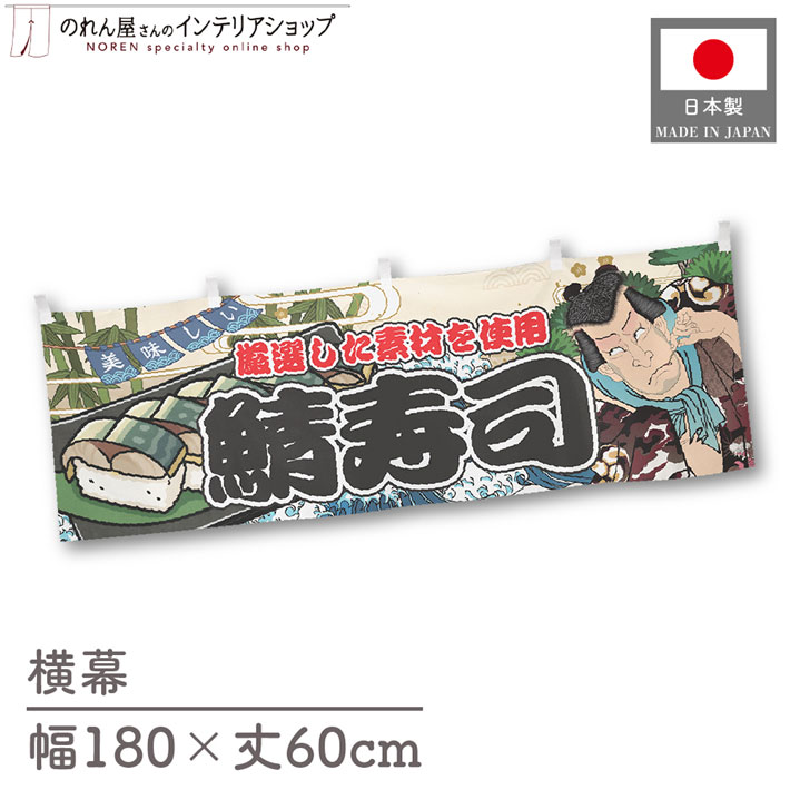 横幕 屋台幕 横長 180cm幅 60cm丈 共チチ 鯖寿司 海鮮 Yakusha-e Style 浮世絵 物産展 暖簾 のれん 業務用 店舗用(受注生産 45501)