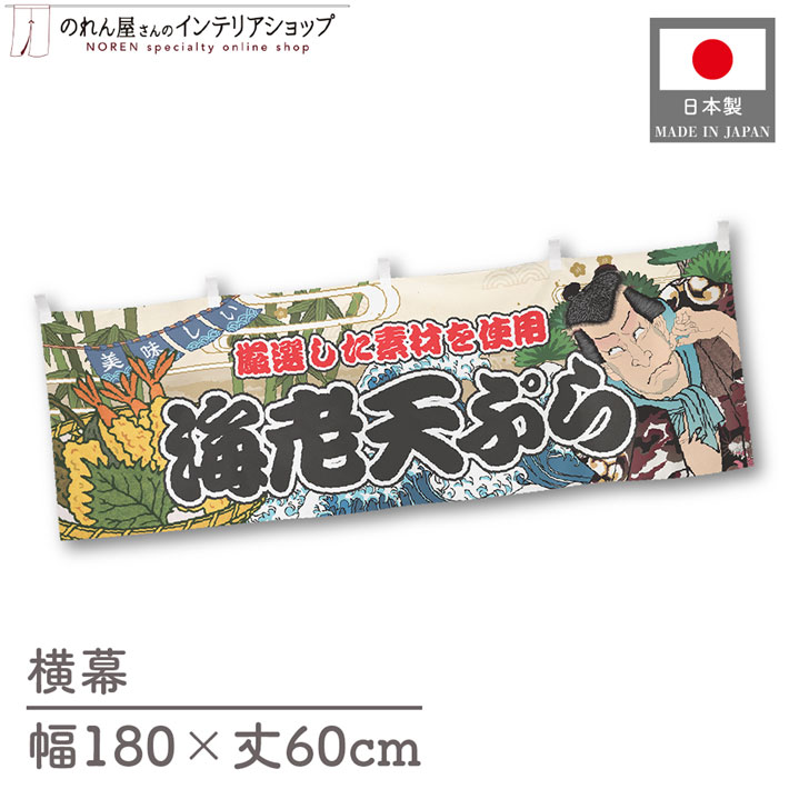 横幕 屋台幕 横長 180cm幅 60cm丈 共チチ 海老天ぷら 海鮮 Yakusha-e Style 浮世絵 物産展 暖簾 のれん 業務用 店舗用(受注生産 45511)