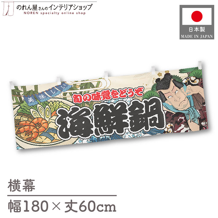 横幕 屋台幕 横長 180cm幅 60cm丈 共チチ 海鮮鍋 海鮮 Yakusha-e Style 浮世絵 物産展 暖簾 のれん 業務用 店舗用(受注生産 45512)