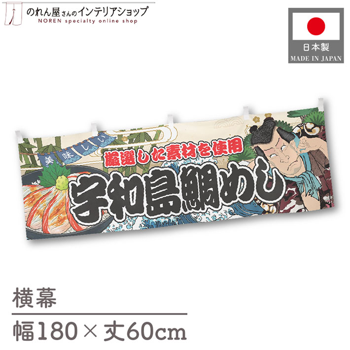 横幕 屋台幕 横長 180cm幅 60cm丈 共チチ 宇和島鯛めし 海鮮 Yakusha-e Style 浮世絵 物産展 暖簾 のれん 業務用 店舗用(受注生産 45516)
