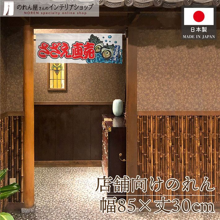 のれん ショート 85cm幅 30cm丈 さざえ直売 波 暖簾 業務用 店舗用 飲食店(受注生産 46488)