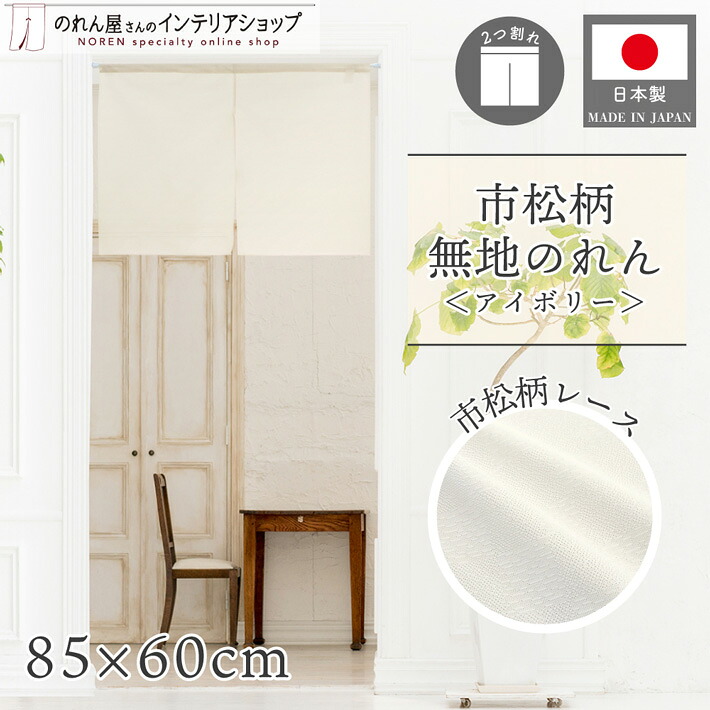 (特価)のれん 無地 シンプル ナチュラル 85cm幅 60cm丈 2つ割 市松レース アイボリー 間仕切り 目隠し 洋風 和風(47924)