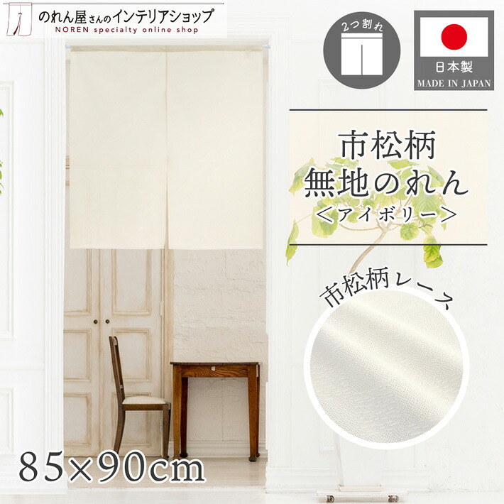(特価)のれん 無地 シンプル ナチュラル 85cm幅 90cm丈 2つ割 市松レース アイボリー 間仕切り 目隠し 洋風 和風(47925)