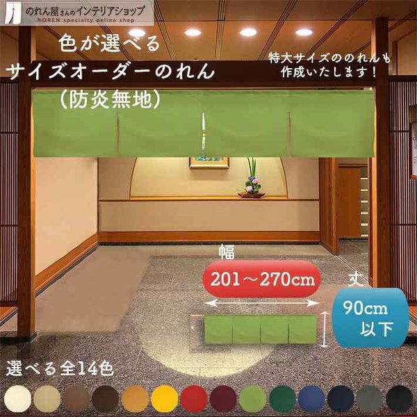 防炎 のれん 名入れ OP 無地 厚手 14色 幅201cm〜270cm 丈30cm〜90cm 2〜4つ割 サイズオーダー 防炎アーネスト 暖簾 和風 間仕切り 業務用(受注生産 81200〜)