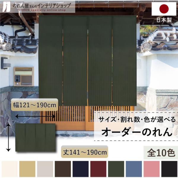 のれん 名入れ OP 当店人気No1 ロング 無地 和み 幅121cm〜190cm 丈141cm〜190cm 2〜4つ割 全10色 サイズオーダー 洋風 暖簾 和風 間仕切り (受注生産 88050〜)