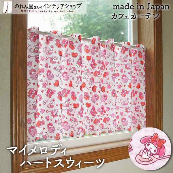 カフェカーテン サンリオキャラクターズ 120cm幅 45cm丈小窓カーテン キッチン マイメロディ ハートスウィーツ(受注生産 93555)
