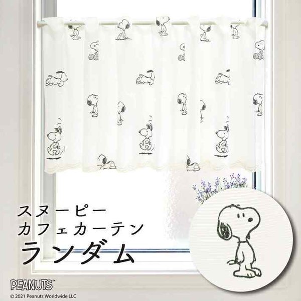 カフェカーテン スヌーピー 120cm幅 45cm丈 小窓カーテン キッチン キャラクター ランダム 白 SNOOPY PEANUTS(受注生産93888)