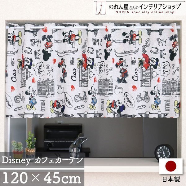 カフェカーテン ミッキーマウス ディズニー 120cm幅 45cm丈 小窓カーテン キッチン ミッキー Let’s_Travel ミニー(受注生産 97192)