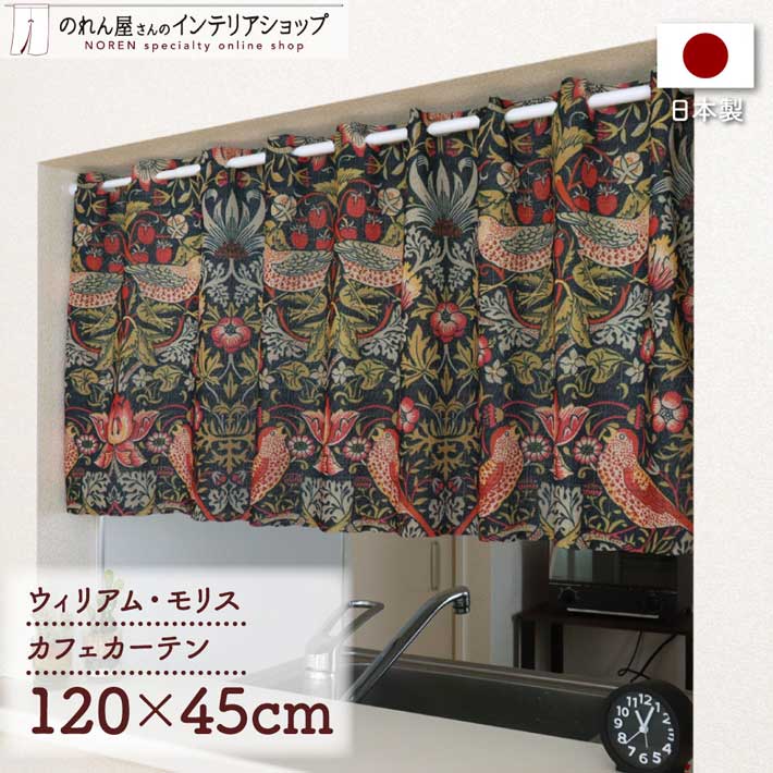カフェカーテン ウィリアムモリス 120cm幅 45cm丈 洋風 小窓カーテン キッチン いちご泥棒 Strawberry Thief(受注生産 97442)