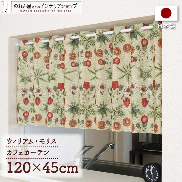 カフェカーテン ウィリアムモリス 120cm幅 45cm丈 洋風 小窓カーテン キッチン ショートカーテン デイジー Daisy(受注生産 97443)