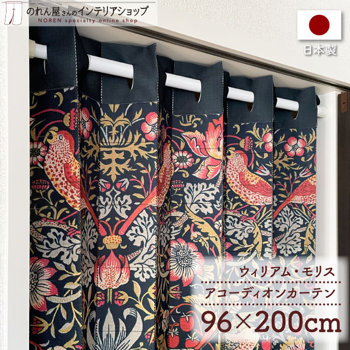 アコーディオンカーテン ウィリアムモリス 96cm幅 200cm丈 パタパタカーテン 間仕切り いちご泥棒 Strawberry Thief(受注生産 97475)