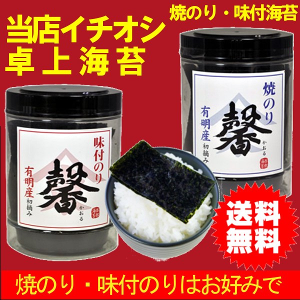 2本セット:有明産卓上のり 馨(かおる) 焼き海苔・味付け海苔 【店舗発送】送料無料:沖縄県+1000円 離島地域+750円 北海道+300円