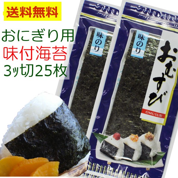おにぎりのり50枚 味付け海苔3切25枚x2袋セット メール便送料無料 3ツ切でおにぎりにぴったり【メール*25】